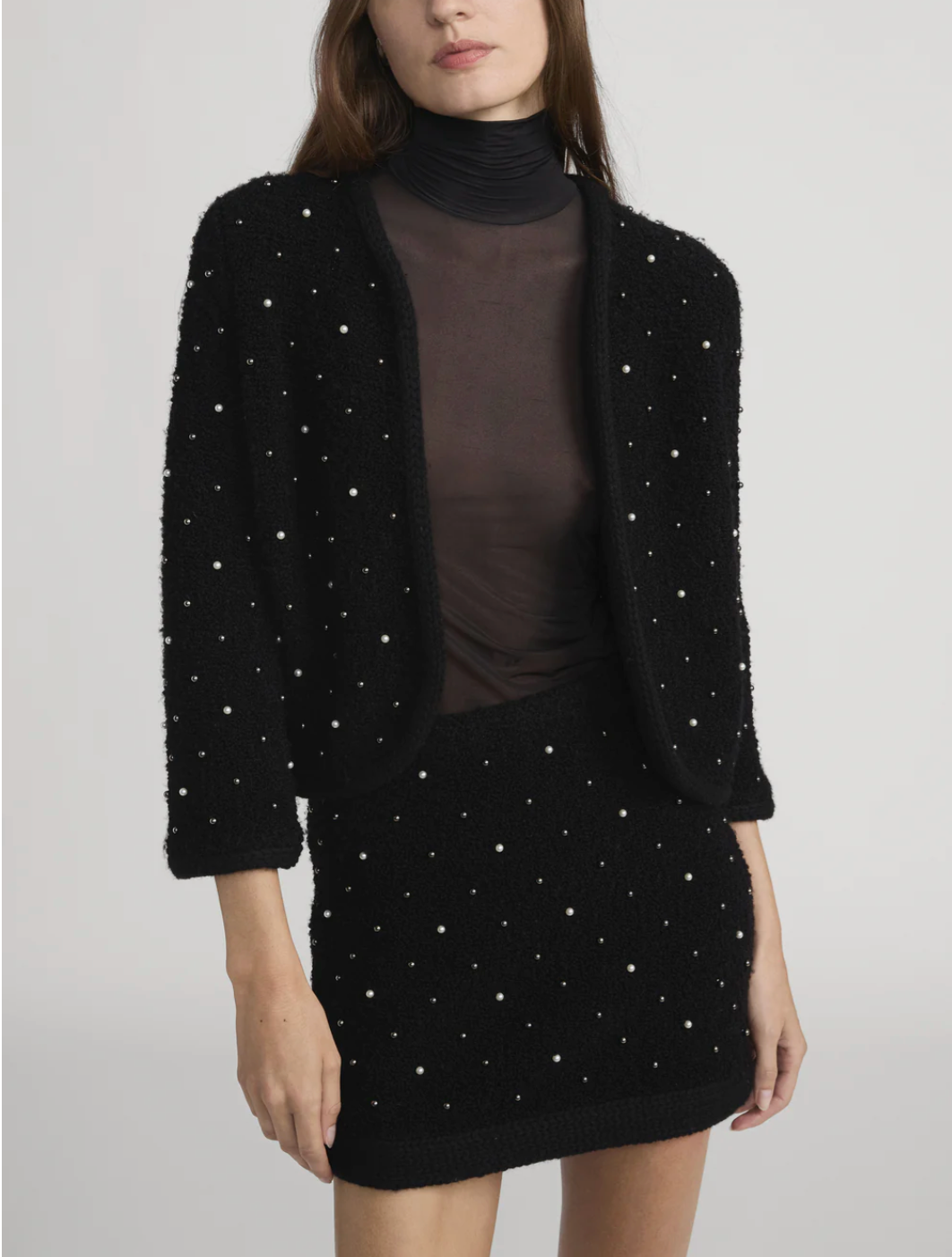 Ce tricot à la fois classique et moderne est orné de perles et de strass sur l’ensemble. Sa silhouette présente de délicates manches trois-quarts et ne comporte aucune fermeture. À porter avec The Jupe Embellished pour un look complet et raffiné.