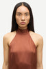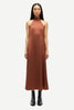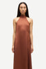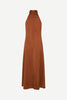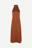 Robe mi-longue en satin, coupe classique et jupe trapèze. Fermeture zippée invisible à l’arrière. Bretelle dos nu. Matière principale : 100 % viscose recyclée.