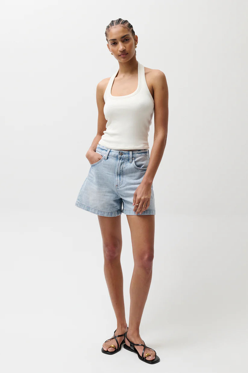 Confectionné en denim rigide sans extensibilité, ce short offre une belle structure et conserve parfaitement sa forme, assurant une tenue impeccable du matin au soir. Le délavage Berkeley, un bleu clair lumineux avec un léger effet usé et de subtiles moustaches, lui confère un aspect naturellement porté, tandis que l’ourlet à finition nette apporte une touche soignée. Une pièce intemporelle à ajouter à votre garde-robe pour une allure cool et raffinée.