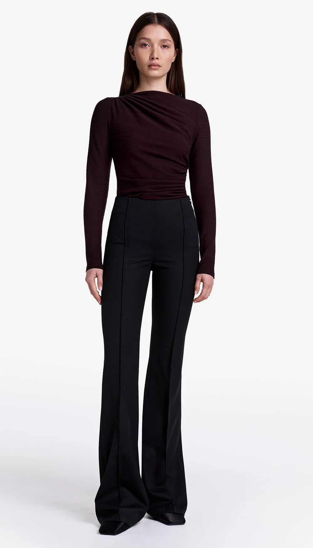 Détails : Taille mi-haute et légèrement évasée, ce pantalon extensible long présente un devant plat (sans ceinture), un pli cousu et une fermeture éclair latérale. Conçu pour être ajusté à la taille et aux hanches, il est un excellent pantalon noir à avoir dans sa garde-robe.