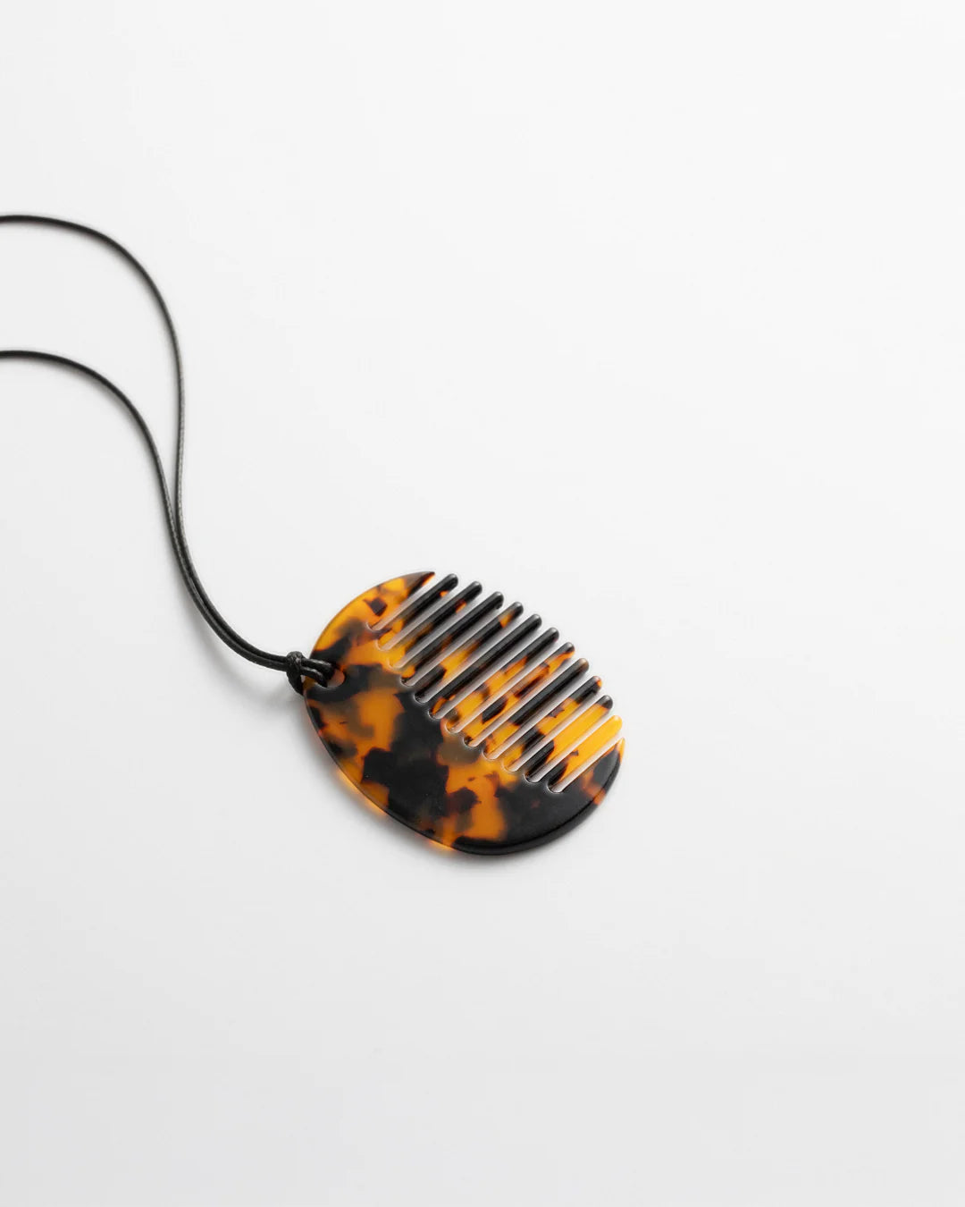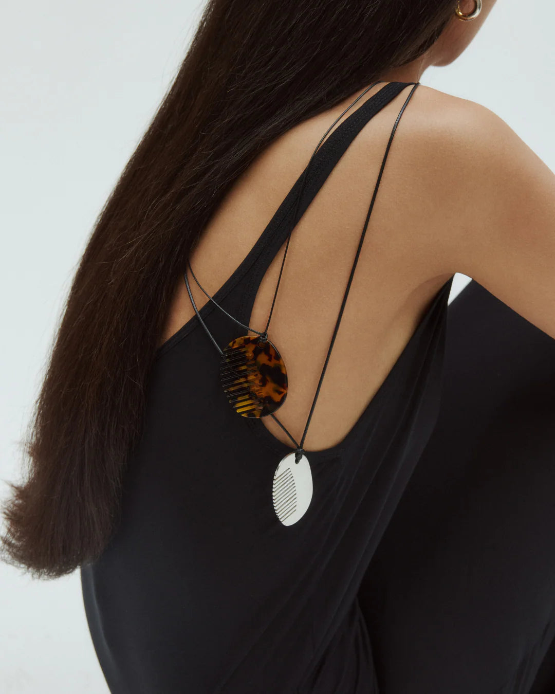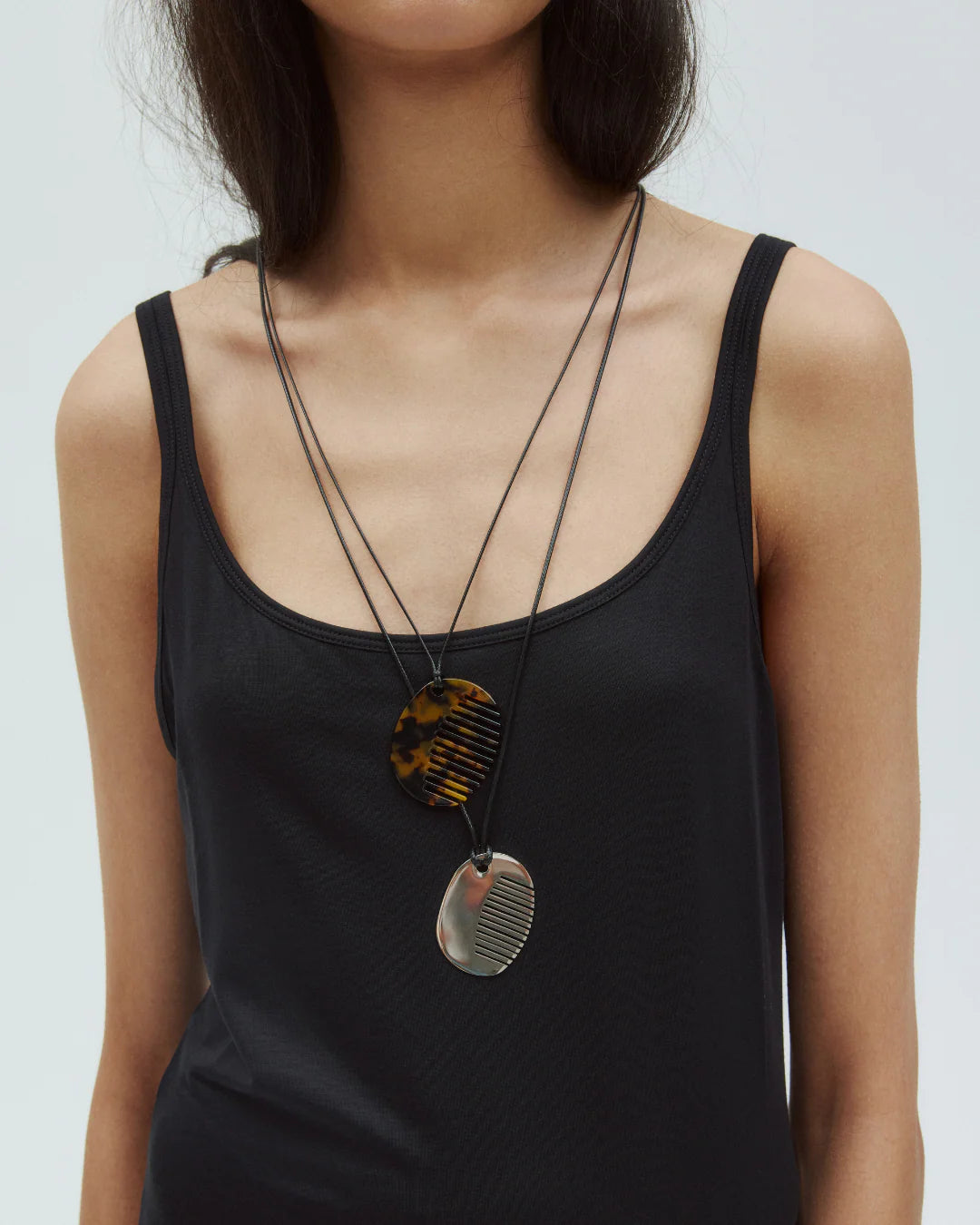 Composé de résine, cordon en cuir et laiton plaqué argent 925.
