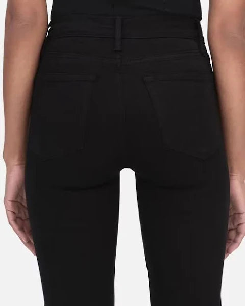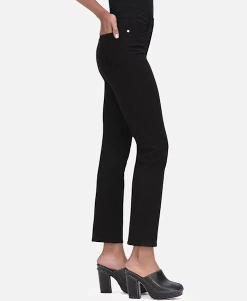 Une silhouette droite à coupe ajustée avec une taille haute, un léger resserrement au niveau du genou et un entrejambe raccourci. Confectionné à partir de denim noir de qualité supérieure offrant une grande élasticité et un excellent pouvoir de récupération.