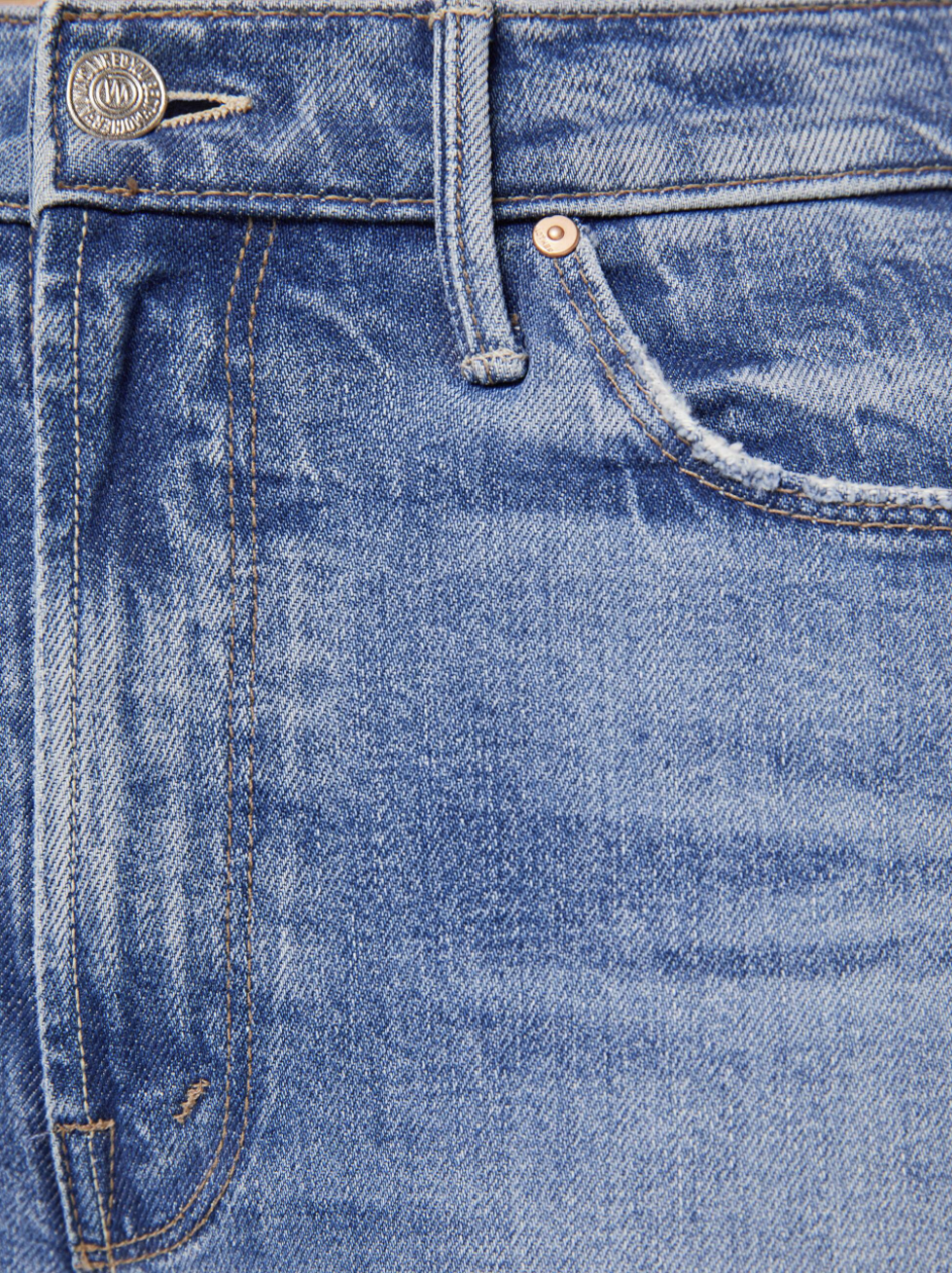 Continuez votre route ! Jean droit taille haute avec entrejambe de 71 cm et ourlet net. Confectionné en denim semi-rigide de qualité supérieure, le modèle Trucks Are For Girls est d'un bleu clair avec des moustaches et un effet délavé au genou.