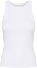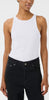 Ce débardeur côtelé ajusté présente une encolure haute élégante et un logo brodé ton sur ton. Sa silhouette épurée et ses détails minimalistes lui confèrent un look moderne et raffiné.