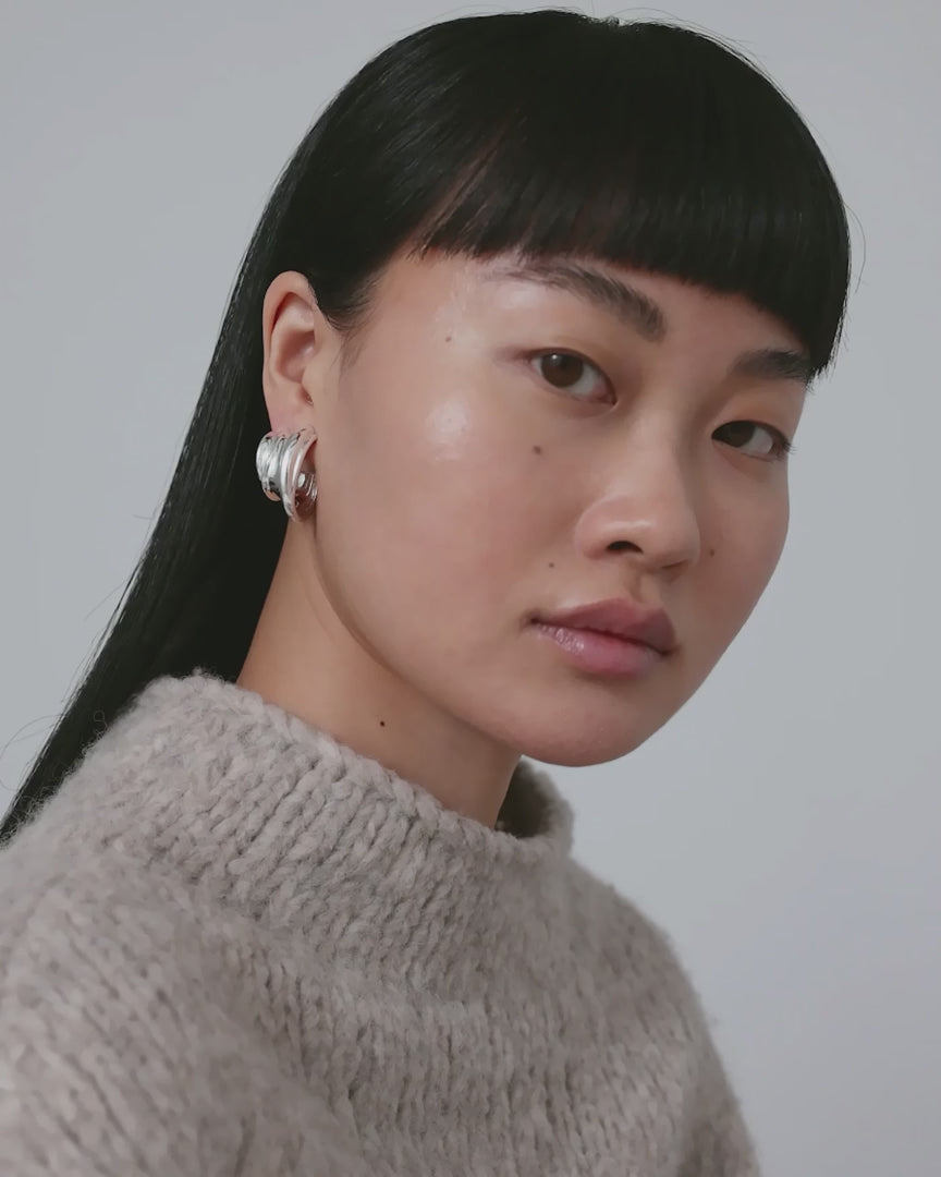 Version spectaculaire des créoles, ces créoles en argent arborent des étirements sculpturaux et des rainures aux formes organiques. Conçues avec soin pour être légères, elles sont associées à des rehausseurs de lobe pour un maintien optimal. Finition en argent poli.
