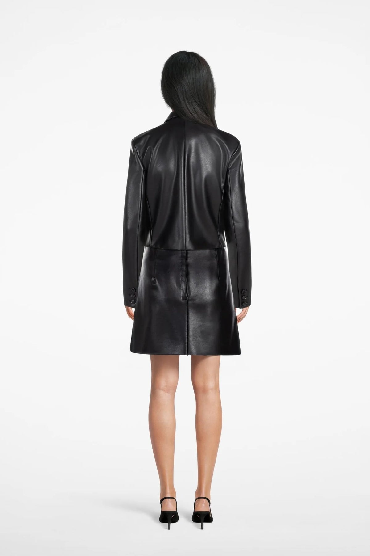 Charme rétro avec une touche moderne et élégante. La mini-jupe Vogue Mod présente une coupe trapèze épurée en similicuir lisse, entièrement doublée pour plus de confort et de structure. Avec sa fermeture éclair dissimulée au dos et sa taille mi-haute, cette jupe offre une polyvalence raffinée, parfaite avec des blazers, des pulls ou des hauts tendance. Silhouette mini trapèze pour une coupe flatteuse ; Entièrement doublé pour plus de confort et de structure ; Texture lisse en similicuir pour un poli moderne ; Fermeture éclair dissimulée au dos pour un look sans couture ; Ceinture mi-haute pour un style polyvalent.