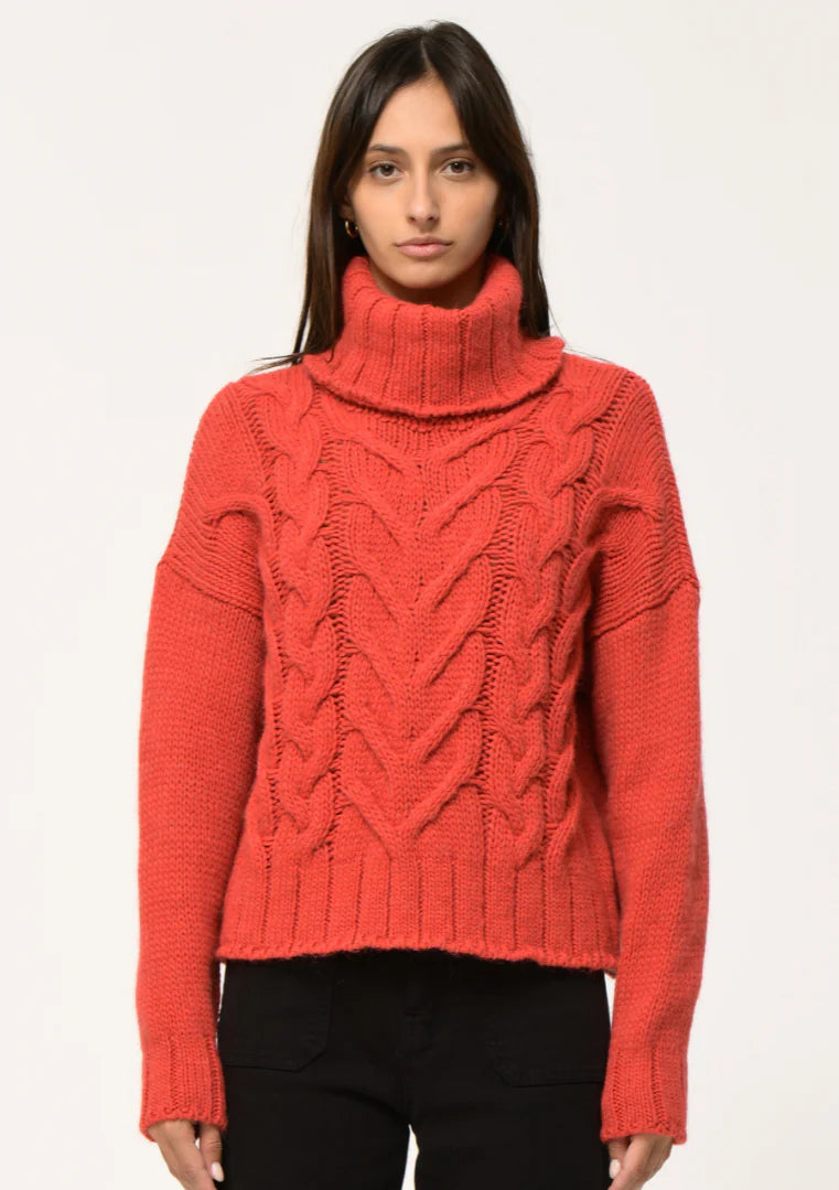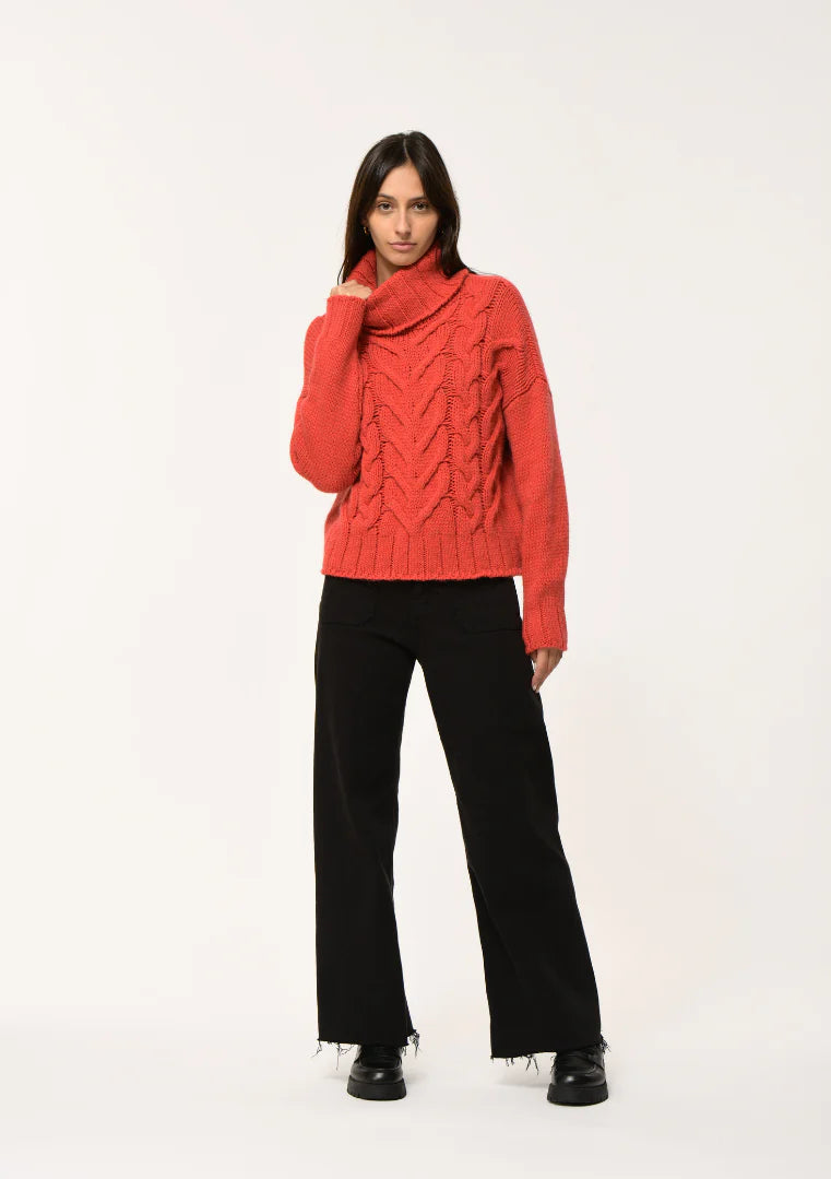 : Sa maille torsadée épaisse qui allie confort et élégance.