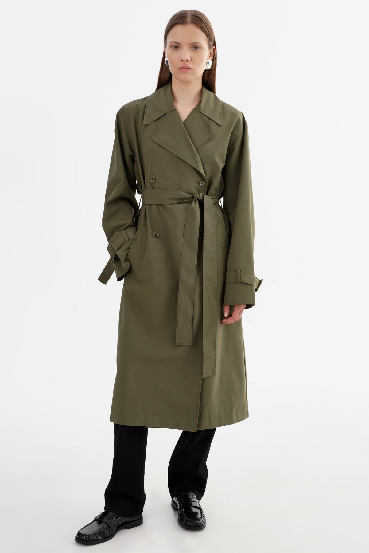 Le trench oversize COLETTE allie un design intemporel à une touche contemporaine. Doté d'une fermeture à double boutonnage, d'une ceinture à nouer et de manches larges avec des détails à boucle, il offre une silhouette décontractée mais raffinée. Pièce de transition parfaite, il se superpose sans effort à n'importe quelle tenue pour une touche raffinée.