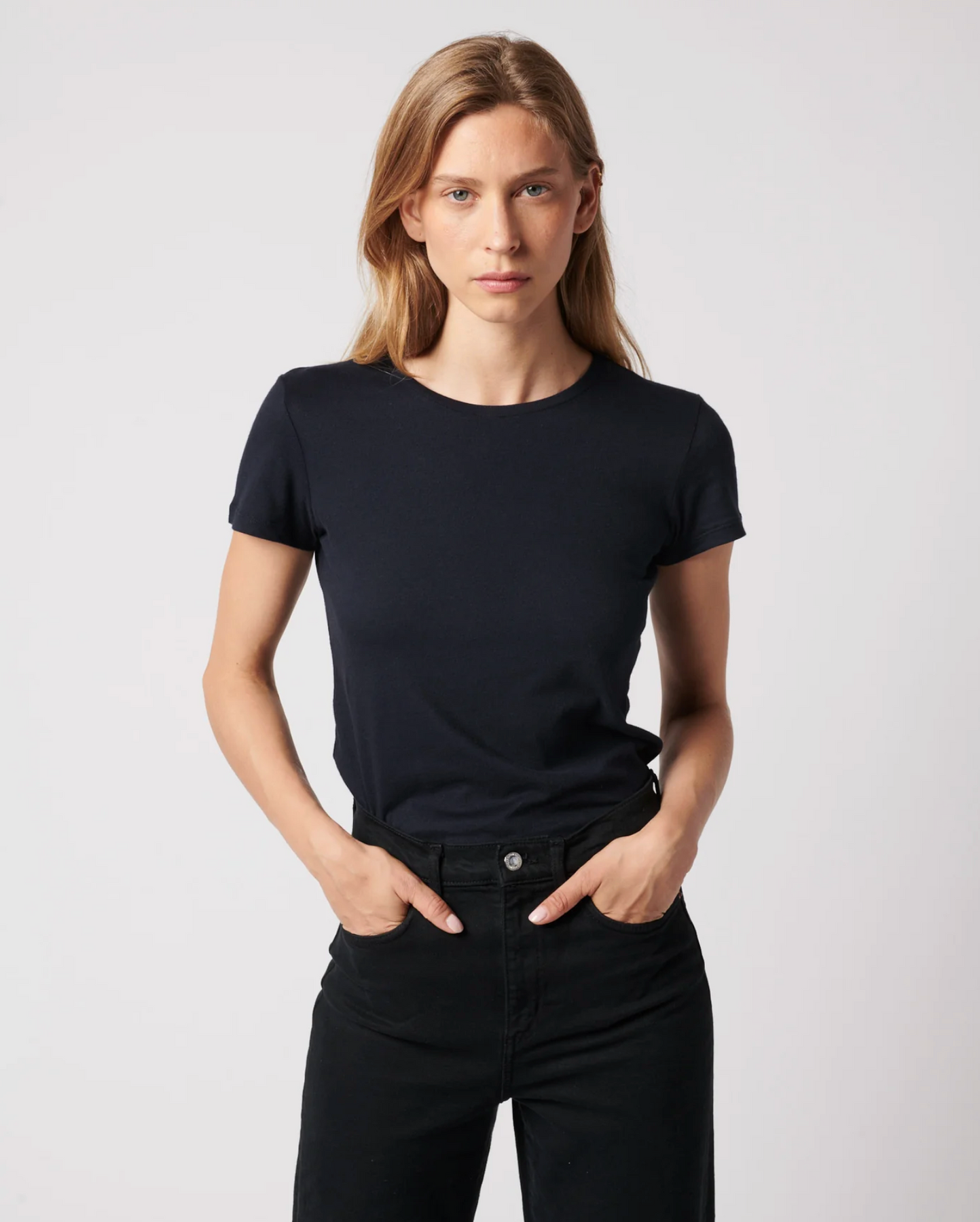 Ce t-shirt au toucher doux offre une coupe luxueuse, seconde peau. Confectionné dans un mélange unique et somptueux de fibres de la plus haute qualité, ce t-shirt à col rond est ultra-doux, stable en couleur, antimicrobien et léger. Votre seconde peau et la couche parfaite. Son tissu ne boulochera jamais, ne se détendra pas, ne décolorera pas et ne se froissera pas.