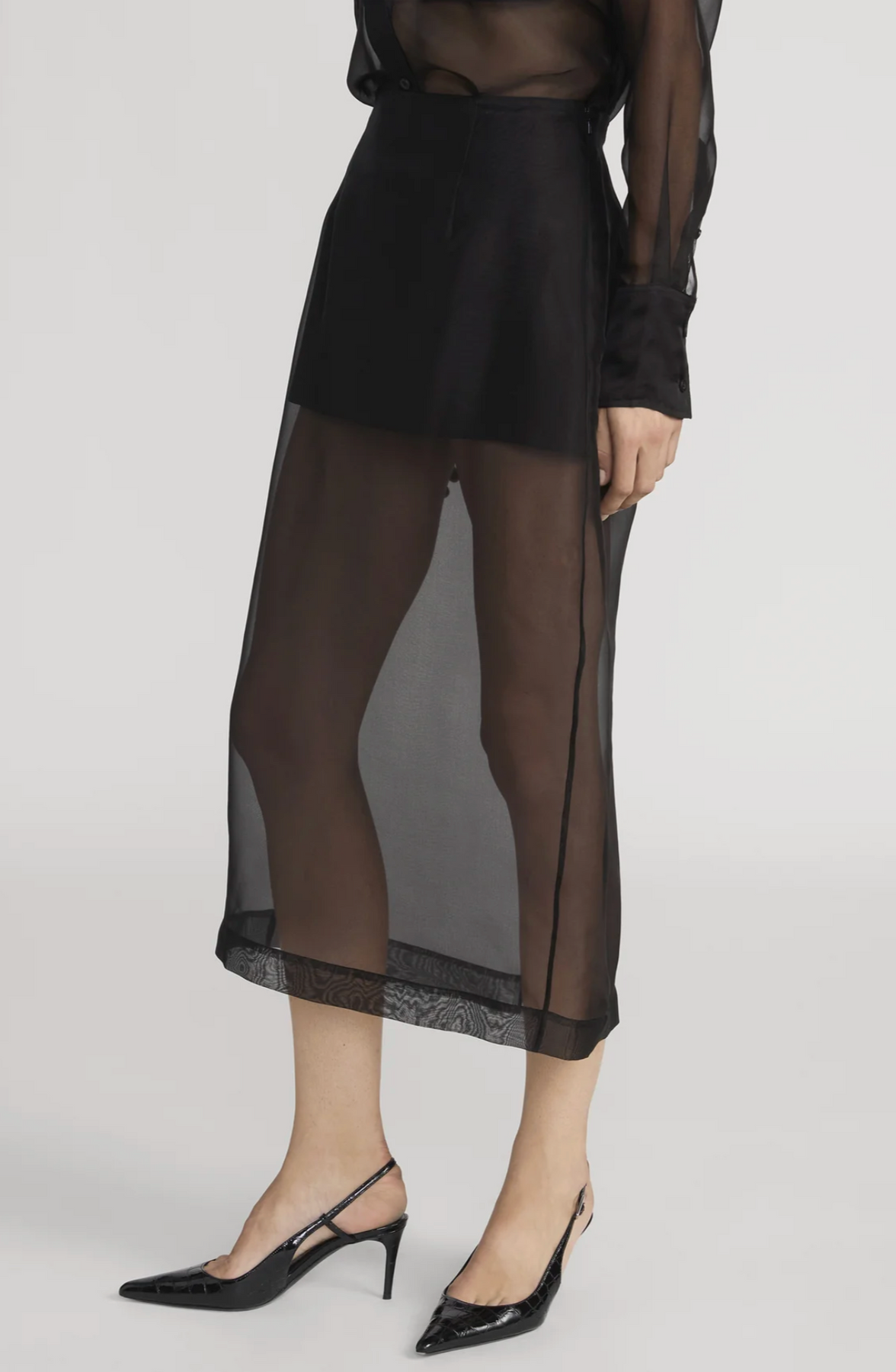 Sculptée dans la soie, cette jupe lumineuse adopte une silhouette crayon intemporelle. Son design sans couture offre un drapé fluide et élégant, formant une base raffinée qui se prête aussi bien aux tenues habillées qu’aux looks plus décontractés.