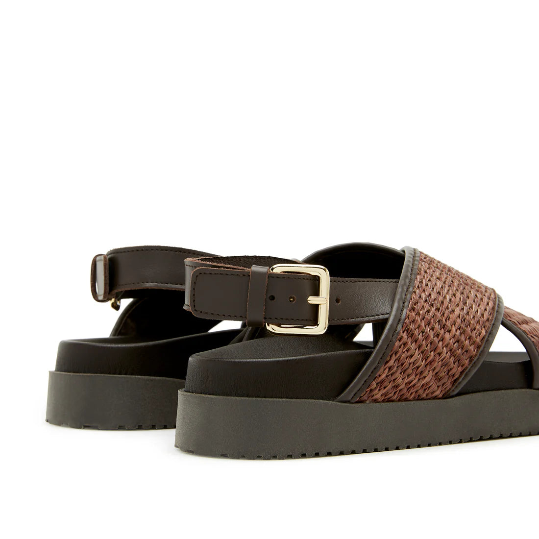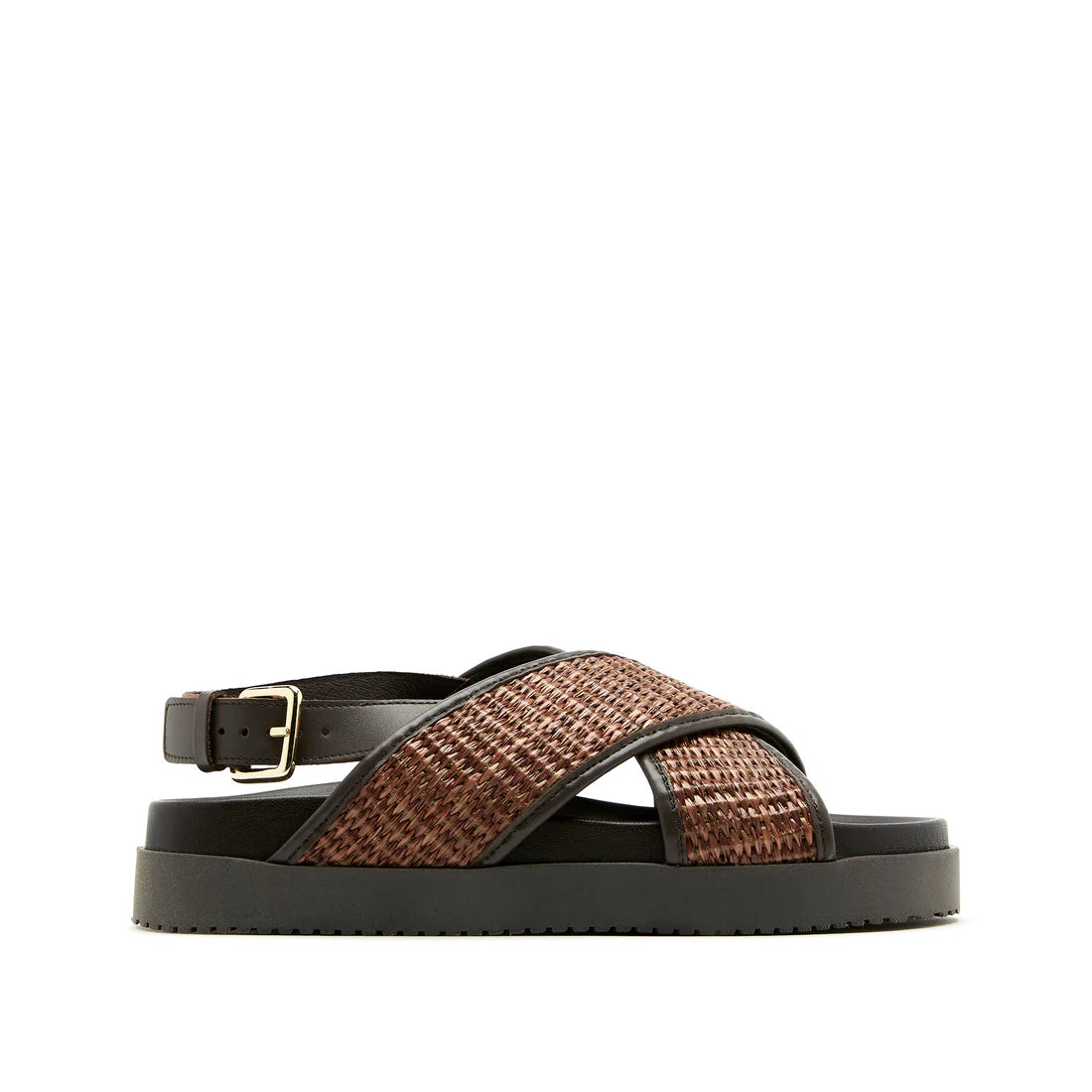 La sandale Amari associe le raphia tressé et le cuir dans de larges brides croisées qui apportent une touche sophistiquée à ce classique de l’été. Dotée d’une semelle intérieure moulée et d’une bride de cheville ajustable pour un confort durable, elle est idéale pour les journées ensoleillées et un style sans effort.