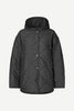 Veste à capuche à coupe surdimensionnée et emmanchures basses. Fermeture boutonnée sur le devant. Poches latérales fendues sur le devant. Logo Samsøe Samsøe imprimé à l’arrière. Motif matelassé. Partiellement rembourré. Matière principale : 100 % polyester recyclé. Insert en sergé de coton dans le dos.