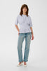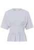Cette blouse pour femme présente une taille ajustée flatteuse, une encolure ronde et des manches jusqu’au coude. Des plis structurés créent une silhouette définie, idéale pour le travail comme pour les occasions décontractées. Style confortable et polyvalent.