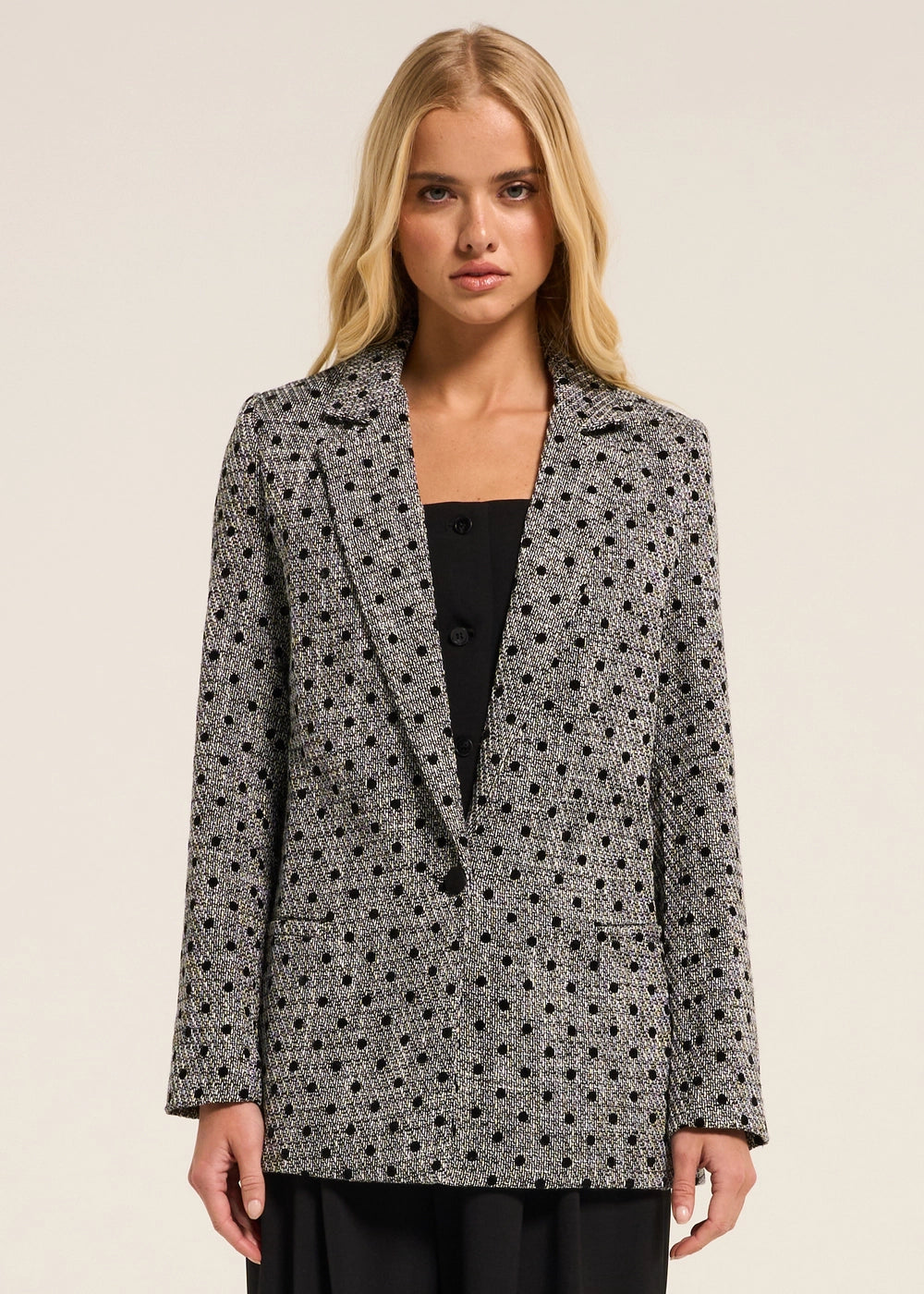 DoublureSans stretchMotif à poisCoupe décontractéeFermeture à un boutonCol et reversPoches passepoiléesÉpaules rembourréesCe produit taille normalement