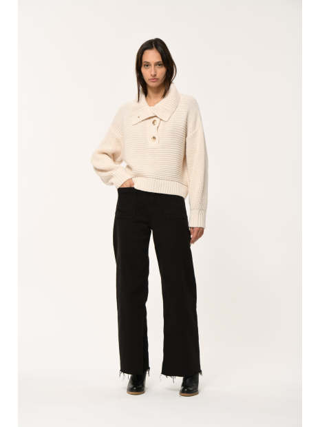 Le pull Ermite écru de La Fée Maraboutée est une maille épaisse avec un col. Son col ras du cou et ses gros boutons lui confèrent un look brut. La maille épaisse et la couleur complètent parfaitement ce look.
