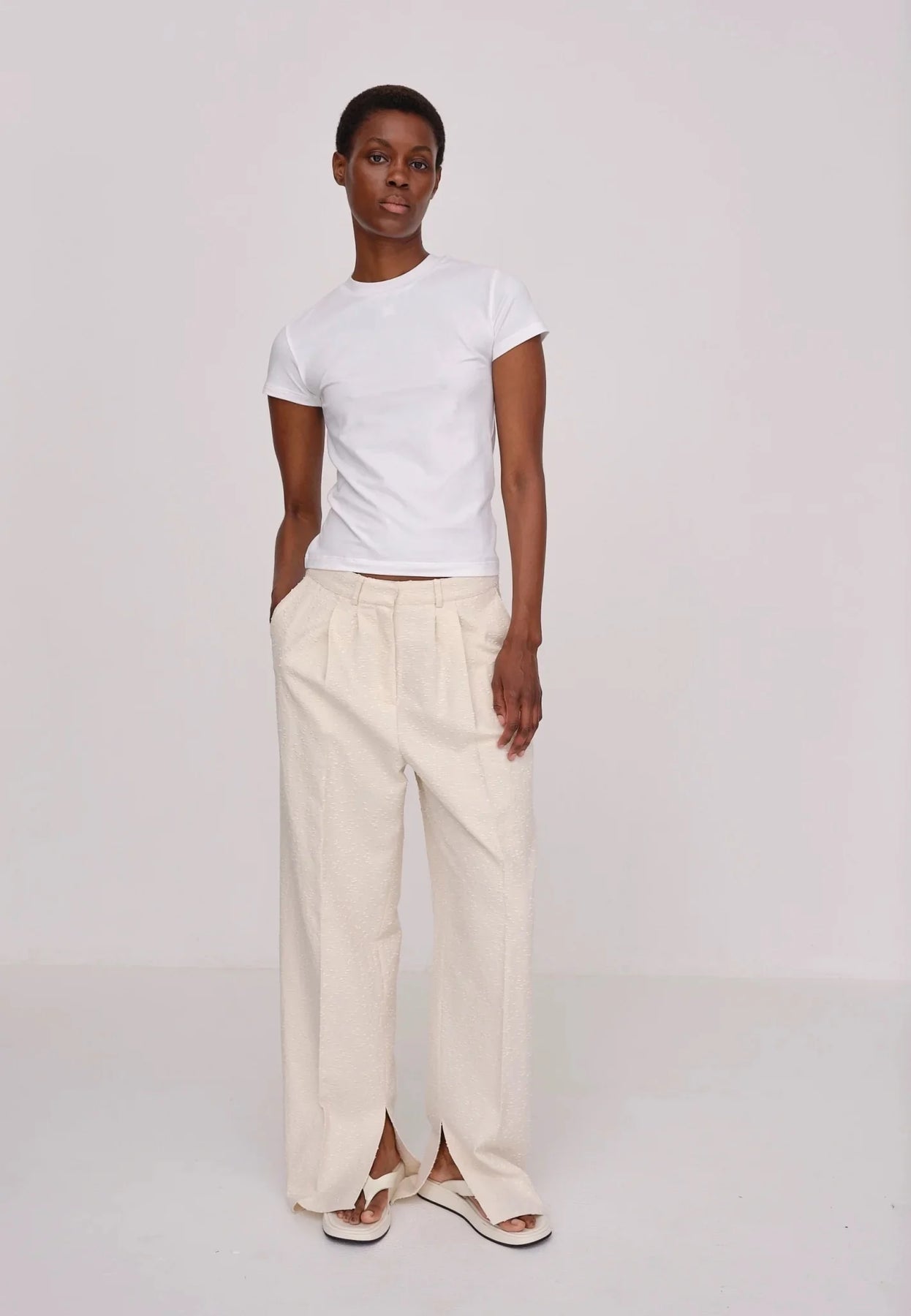 The Rupert trousers have a relaxed fit and front pleats, with a sharp crease. They also feature a five-point flap welt pocket at the back, and a crotch vent.