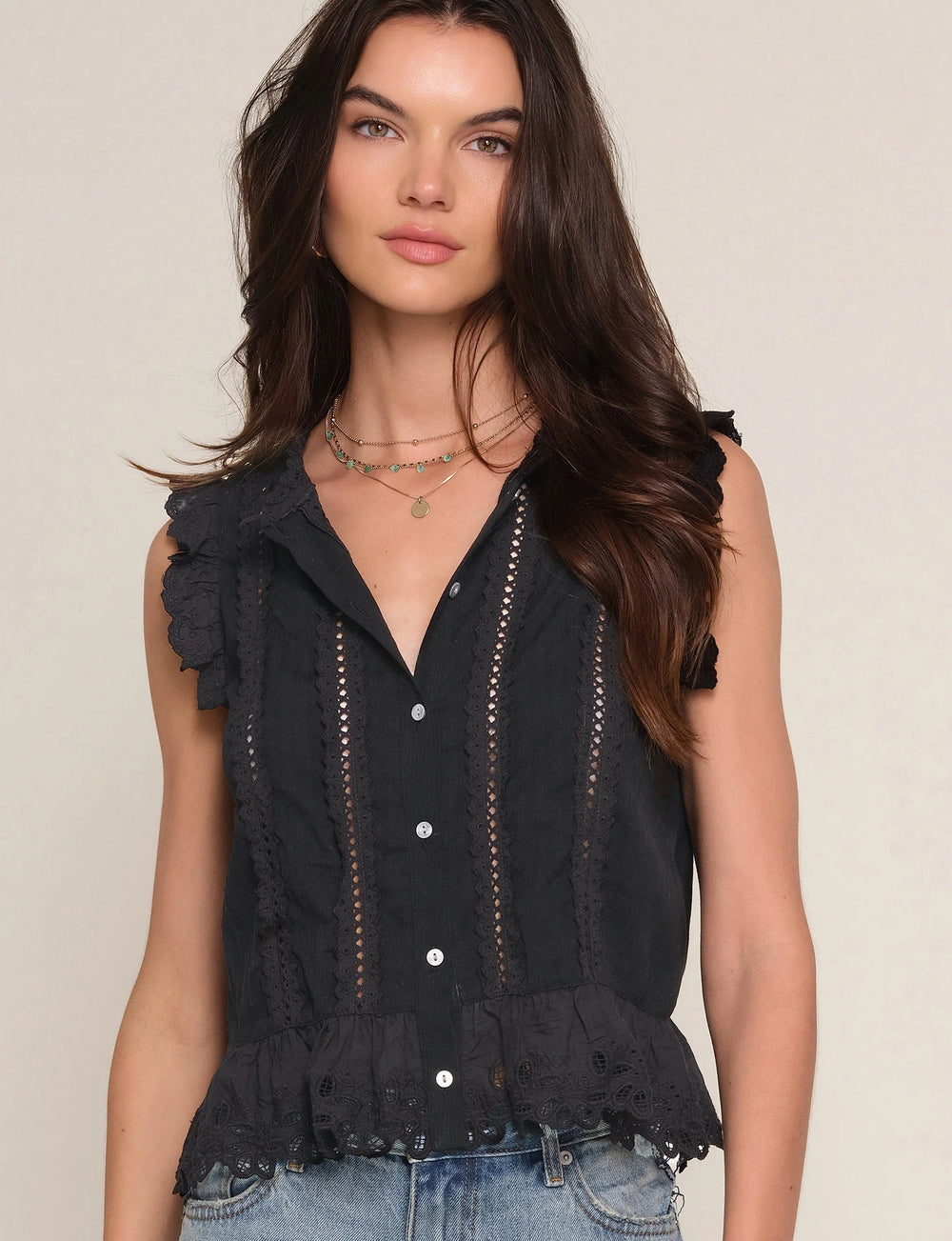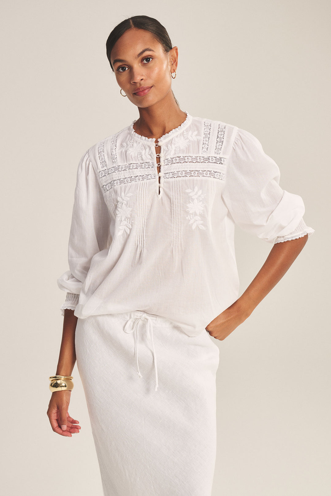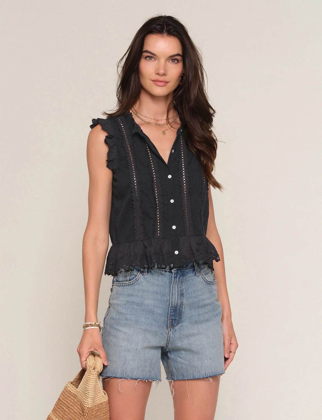 Bella Dahl - Chemise boutonnée à manches courtes brodée