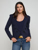 Le blazer en maille Mercer incarne parfaitement une élégance soignée sans en faire trop, avec sa silhouette croisée et sa fermeture discrète par agrafe. Il s’enfile aussi facilement qu’un cardigan, tout en offrant une finition impeccablement structurée.