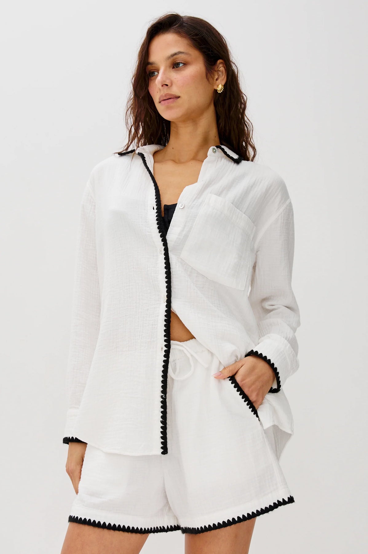 Made from organic double gauze fabric for an extremely lightweight feel, the Idania features classic shirt details including a single chest pocket and single-button cuffs, as well as intricate contrast stitching.