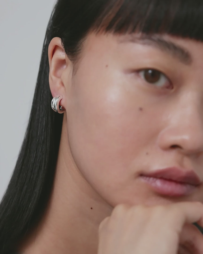 Ces petites boucles d'oreilles créoles en argent présentent des contours marqués. Finition en argent poli brillant.