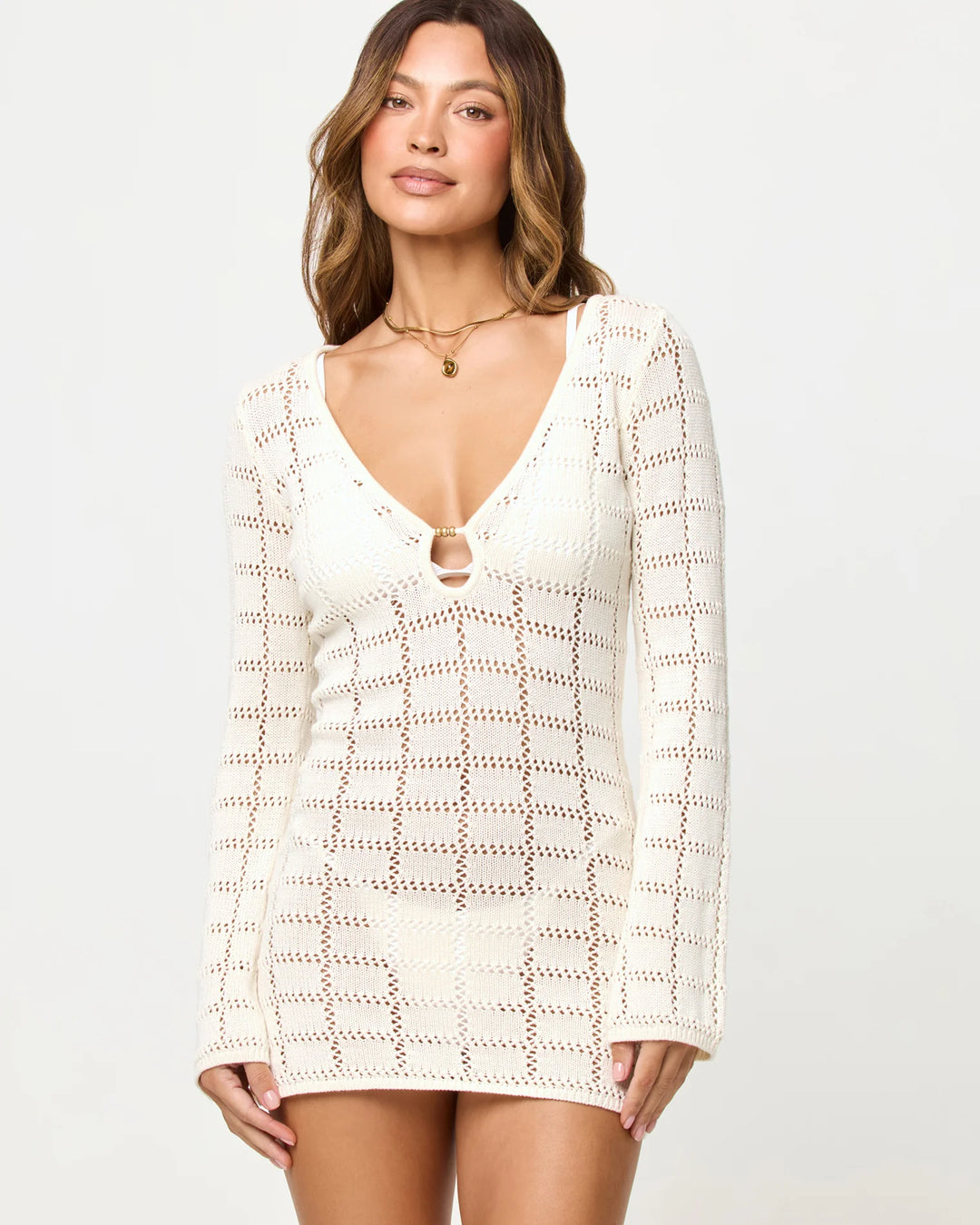 Self-Portrait - Tan Dot Mesh Mini Dress