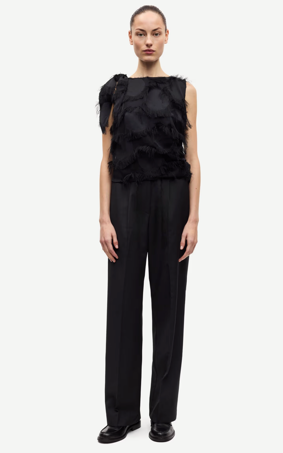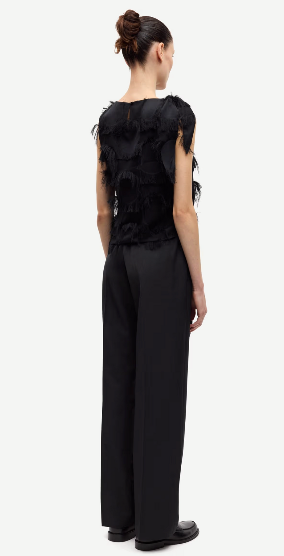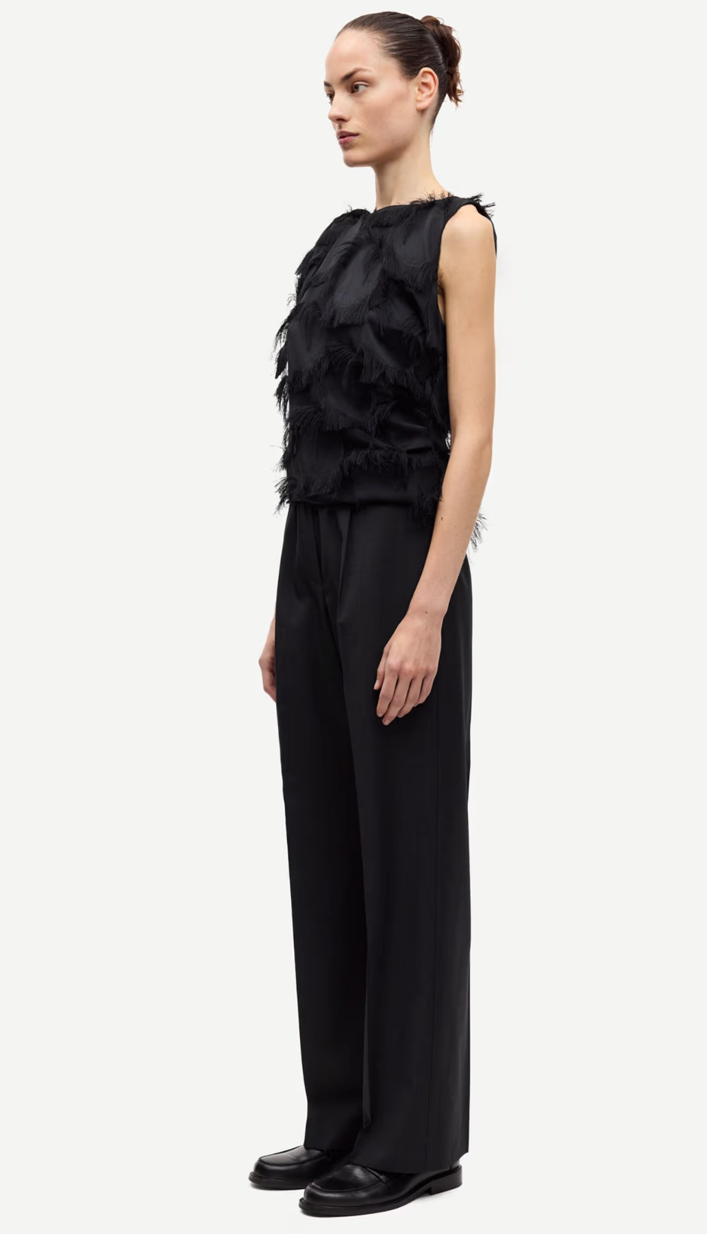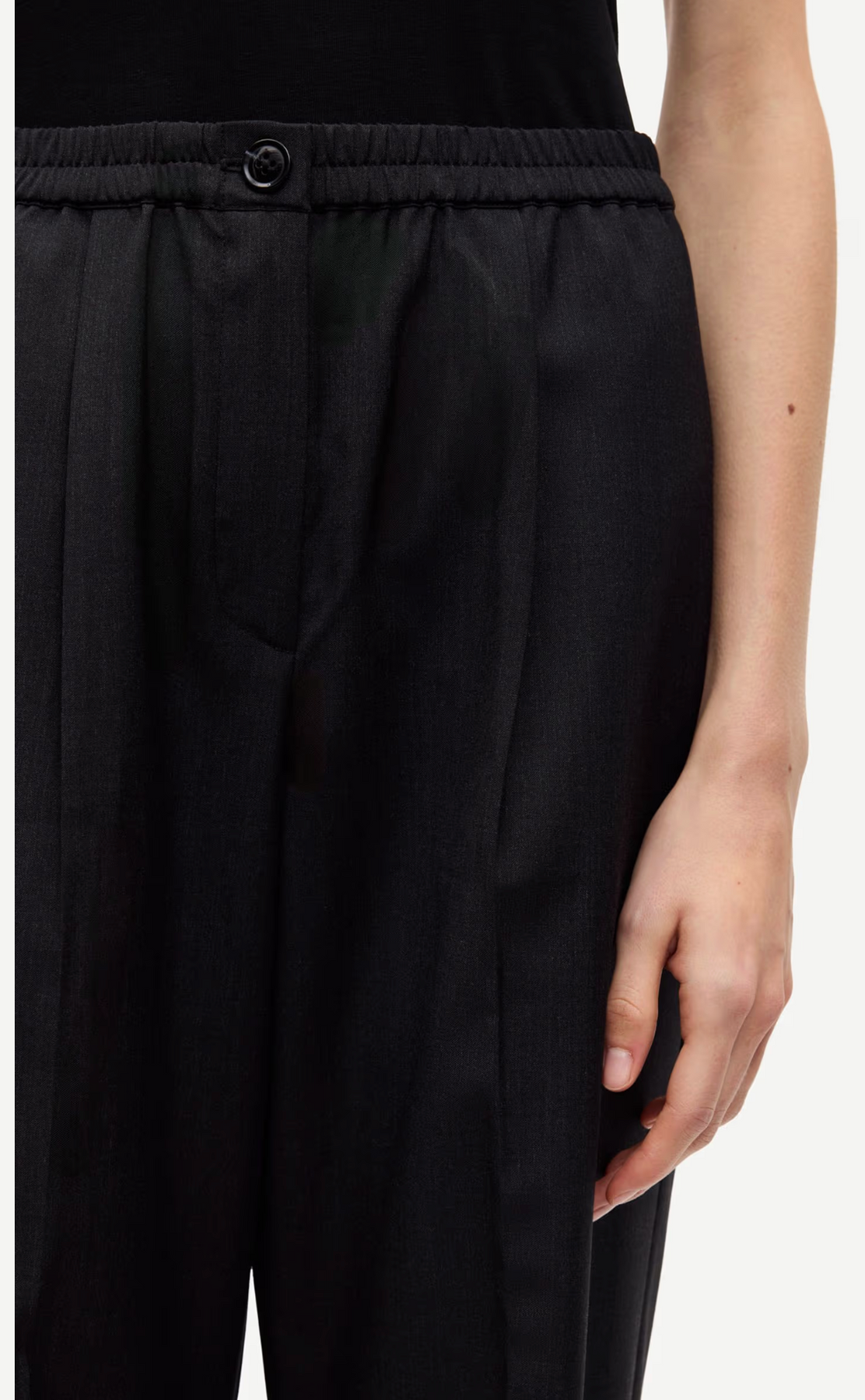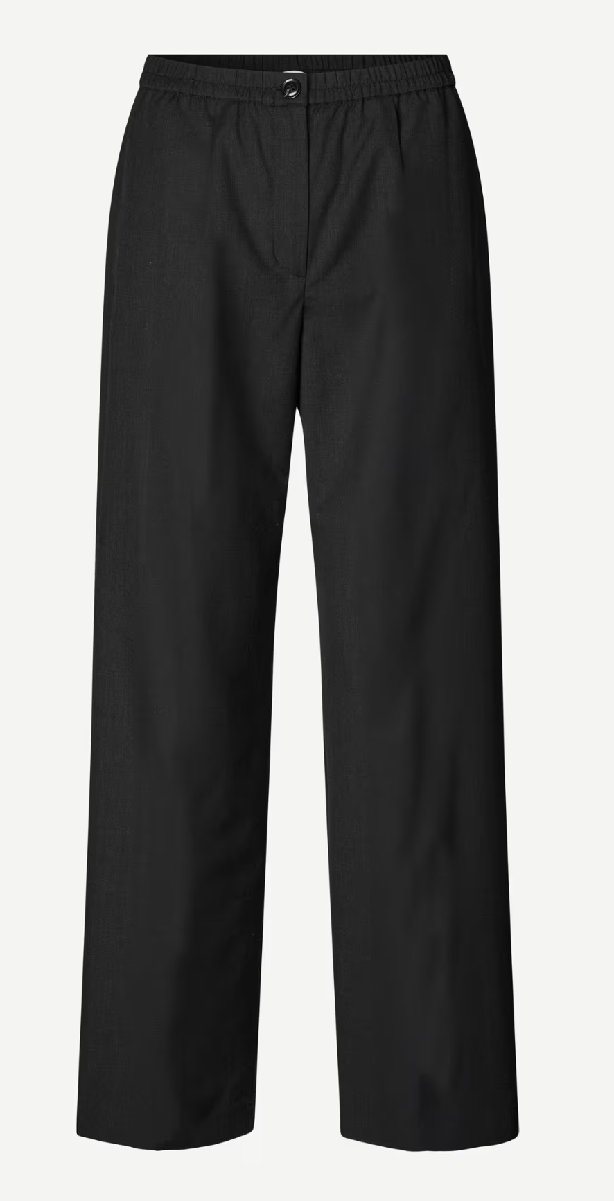 Jean taille moyenne, coupe classique et jambes droites. Braguette à bouton et fermeture éclair. Ceinture élastique. Poches latérales fendues à l'avant. Matière principale : mélange de polyester recyclé et de laine.
