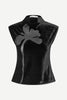 Haut en velours près du corps orné de détails floraux transparents. Col haut. Matière principale en mélange de polyester recyclé élastique. Ce produit est certifié GRS. Chaque étape de la chaîne d’approvisionnement a répondu à des exigences sociales, environnementales et chimiques strictes.