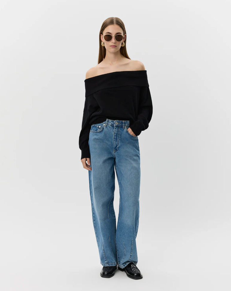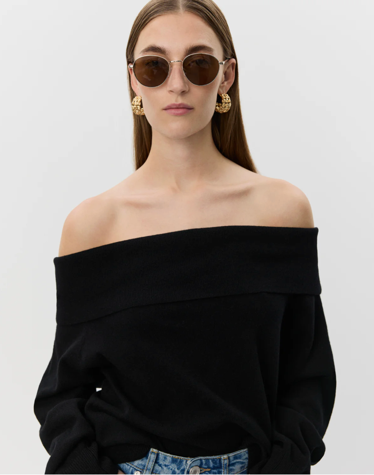 Ce chandail à la coupe régulière est confectionné en 100 % laine pour une chaleur naturelle et un confort optimal. Son encolure dégagée sur les épaules apporte une touche féminine et moderne, tandis que les bordures côtelées aux manches et à l’ourlet ajoutent une finition soignée et structurée.