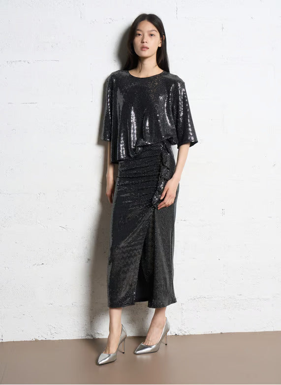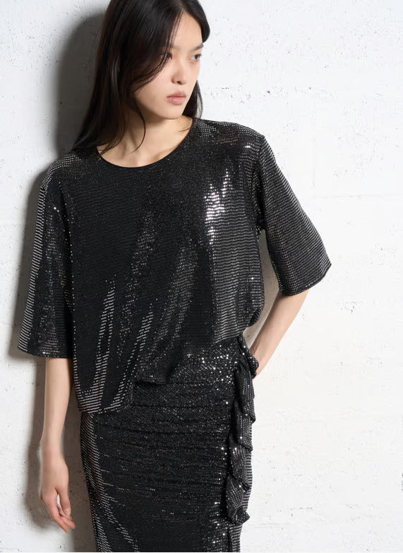 Composition matière principale: 60% Polyester, 35% Fil métallisé, 5% Elasthanne