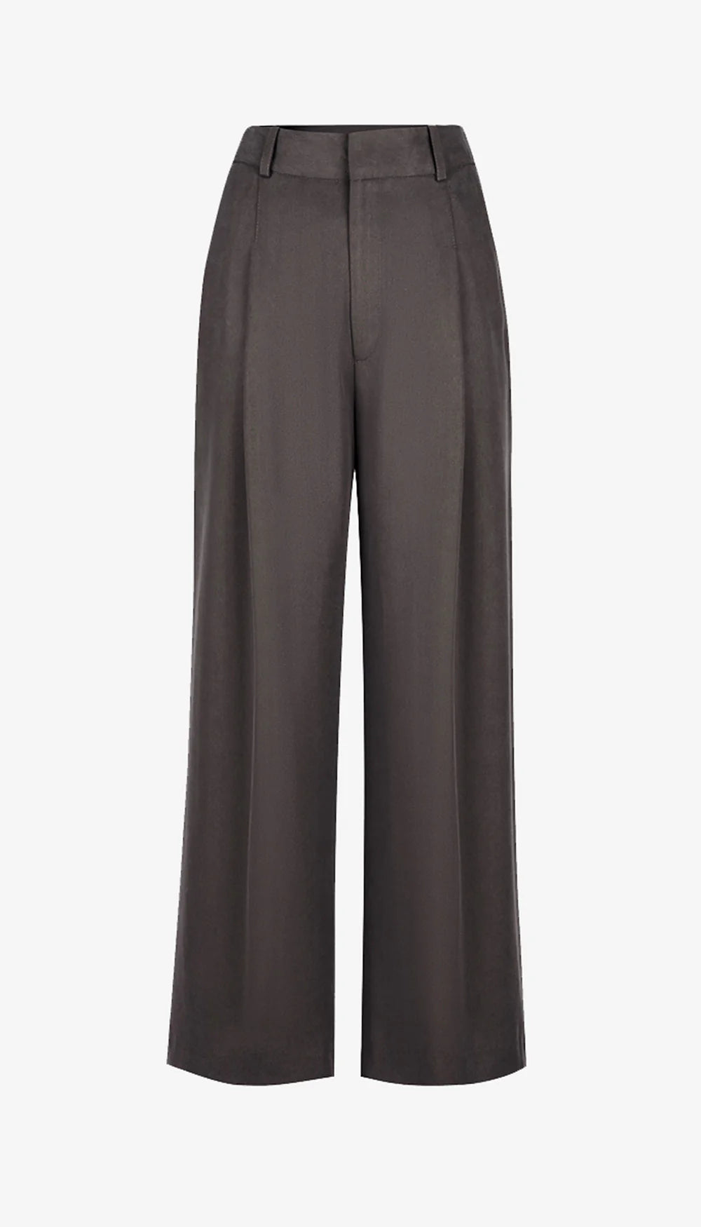 À taille mi-haute, ce nouveau pantalon longueur cheville adopte une silhouette décontractée avec des plis, des poches façon pantalon et une jambe large.