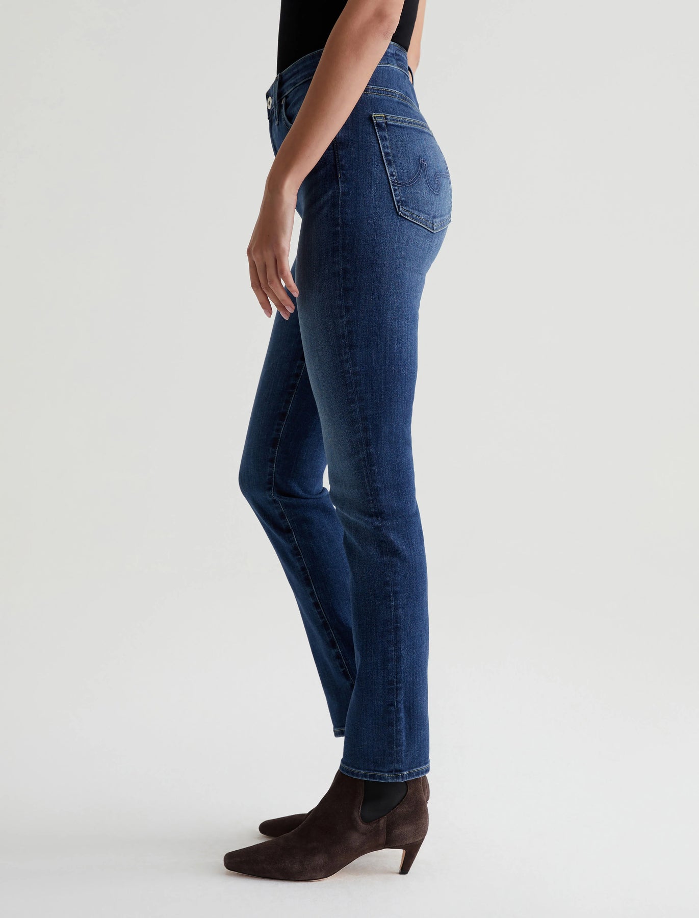 Le jean slim droit taille haute Mari est ample au niveau des hanches avant de tomber dans une silhouette droite qui s'affine légèrement à l'ouverture des jambes. Ce jean à cinq poches pour femmes est conçu dans un denim indigo stretch. Il est doux, confortable et très flatteur pour la silhouette.